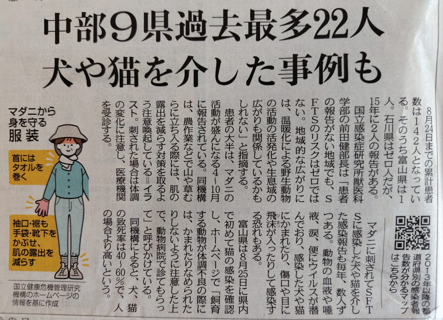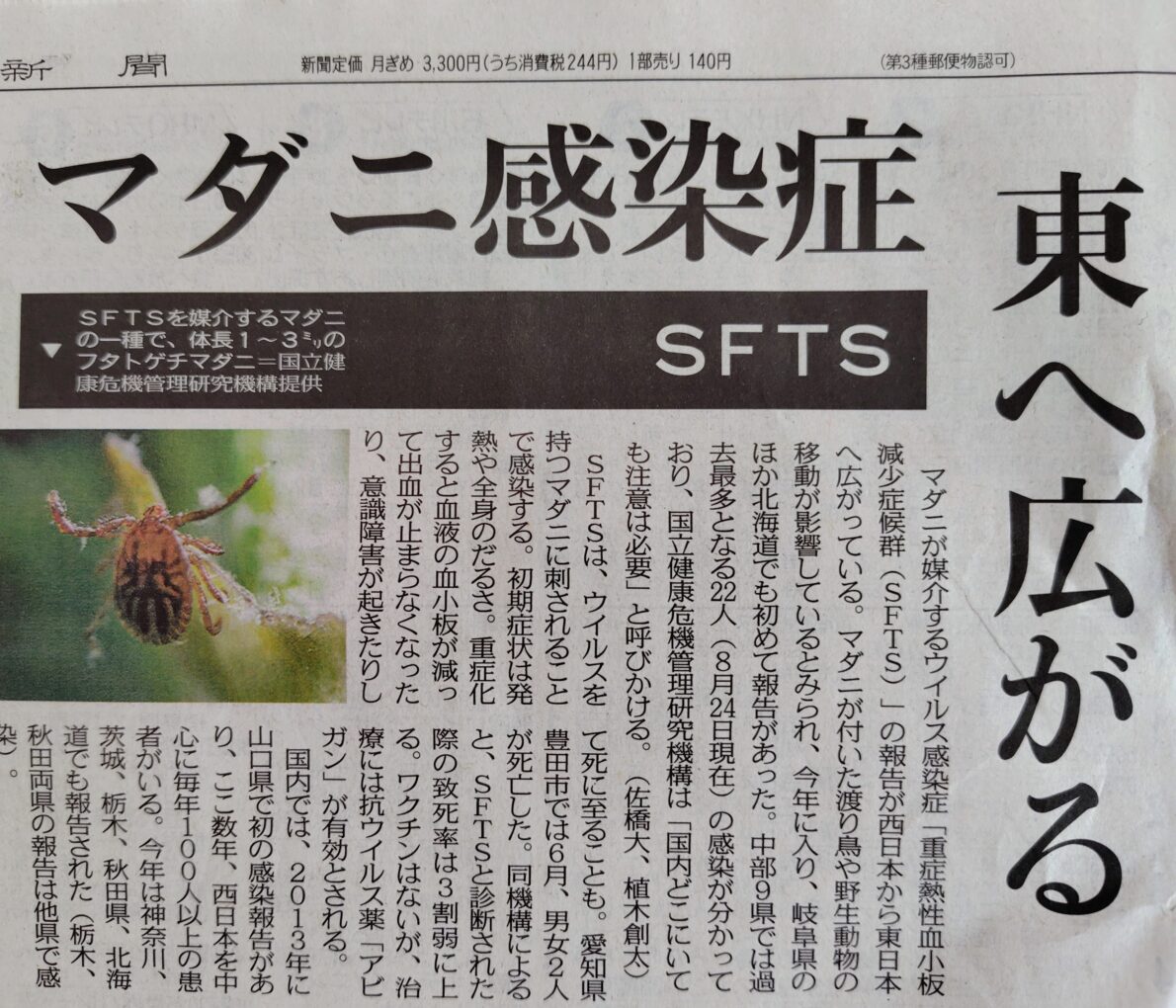去年あたりから東日本などでも報告例がどんどん増え、さらに今年はSFTSにより獣医師が命を落としてしまい